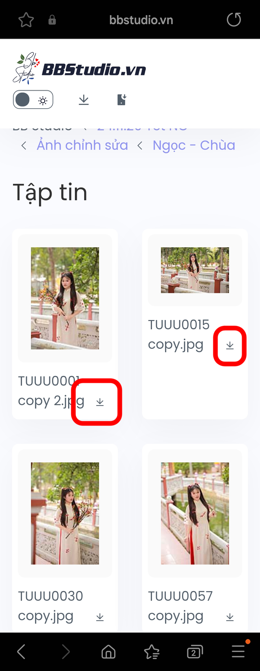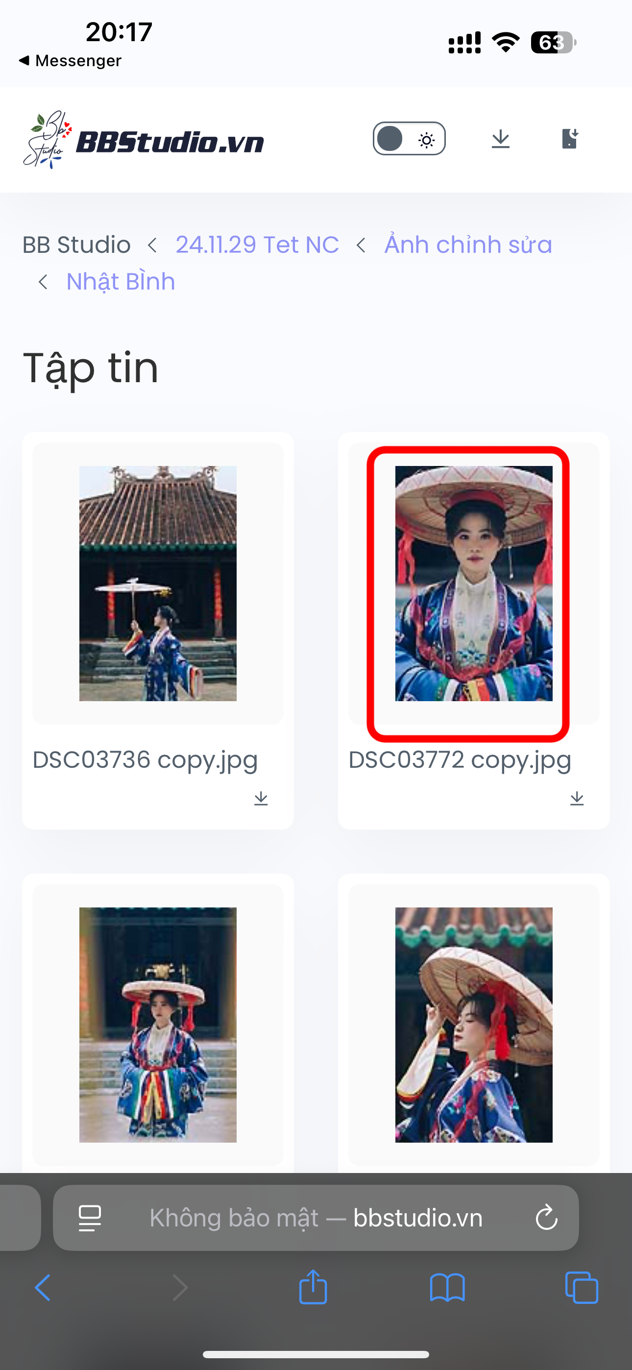 3. Sau khi mở trang Web chia sẻ ảnh của BB, bạn hãy di chuyển đến thư mục chứa ảnh cần tải. Sau đó bấm vào ảnh muốn tải để mở anh chất lượng cao