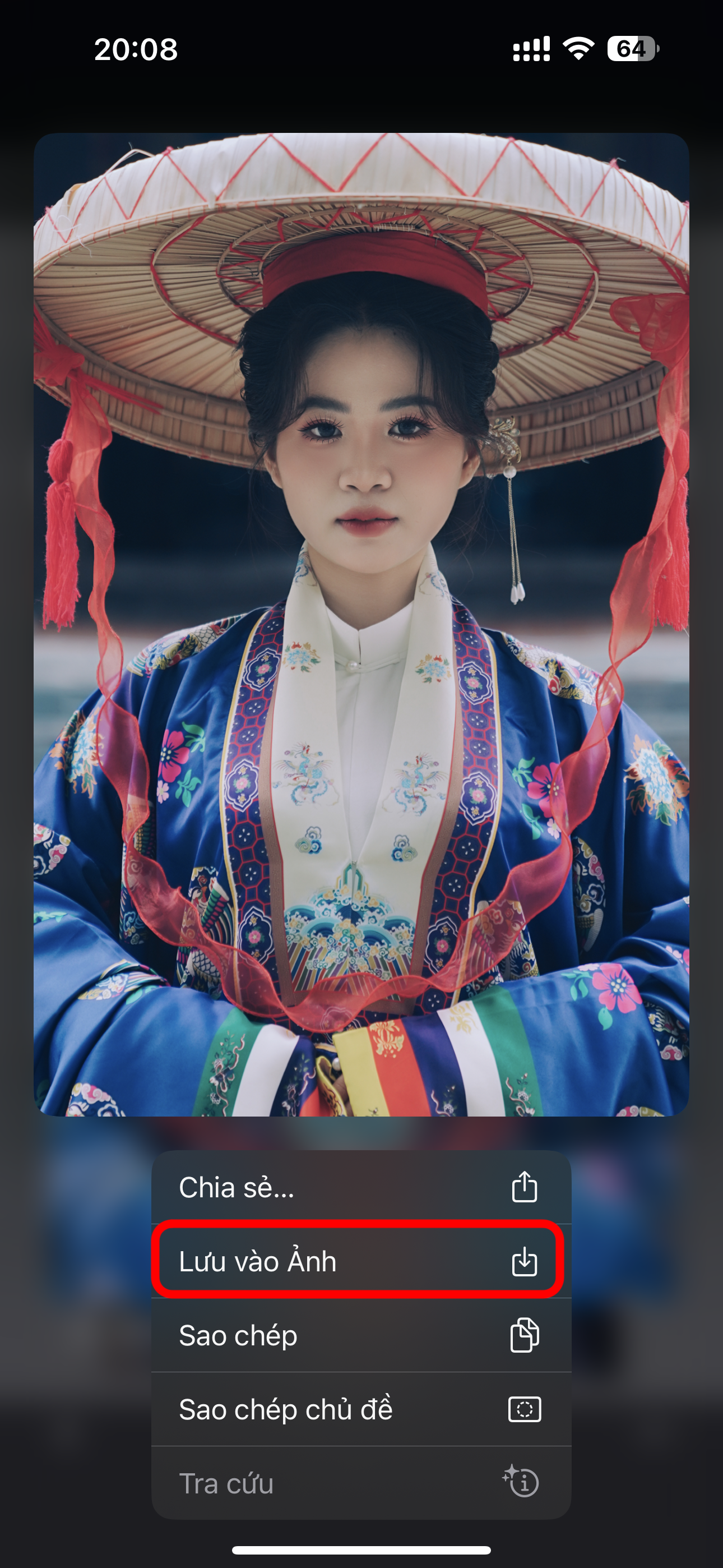 4. Đè và giữ vào vùng tấm ảnh, sau đó chọn Lưu vào ảnh để lưu lại