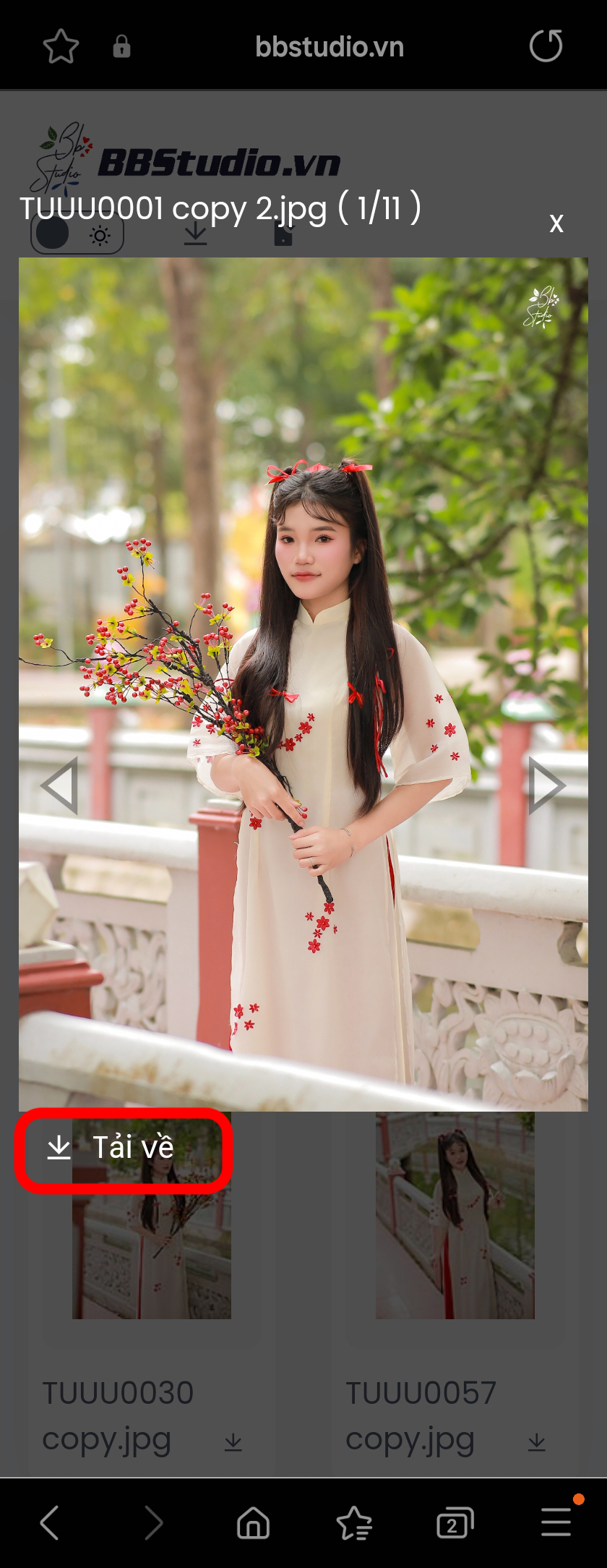 - Cách 2: Mở ảnh lên xem chi tiết, sau đó bấm nút tải về