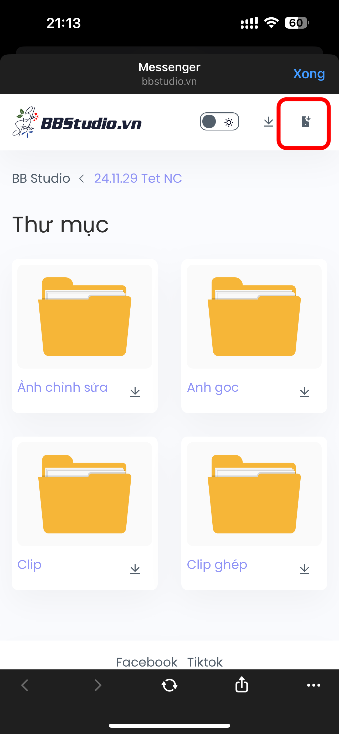 3. Di chuyển đến thư mục chứa ảnh, video cần tải. Ở đây ta có 2 cách tải về