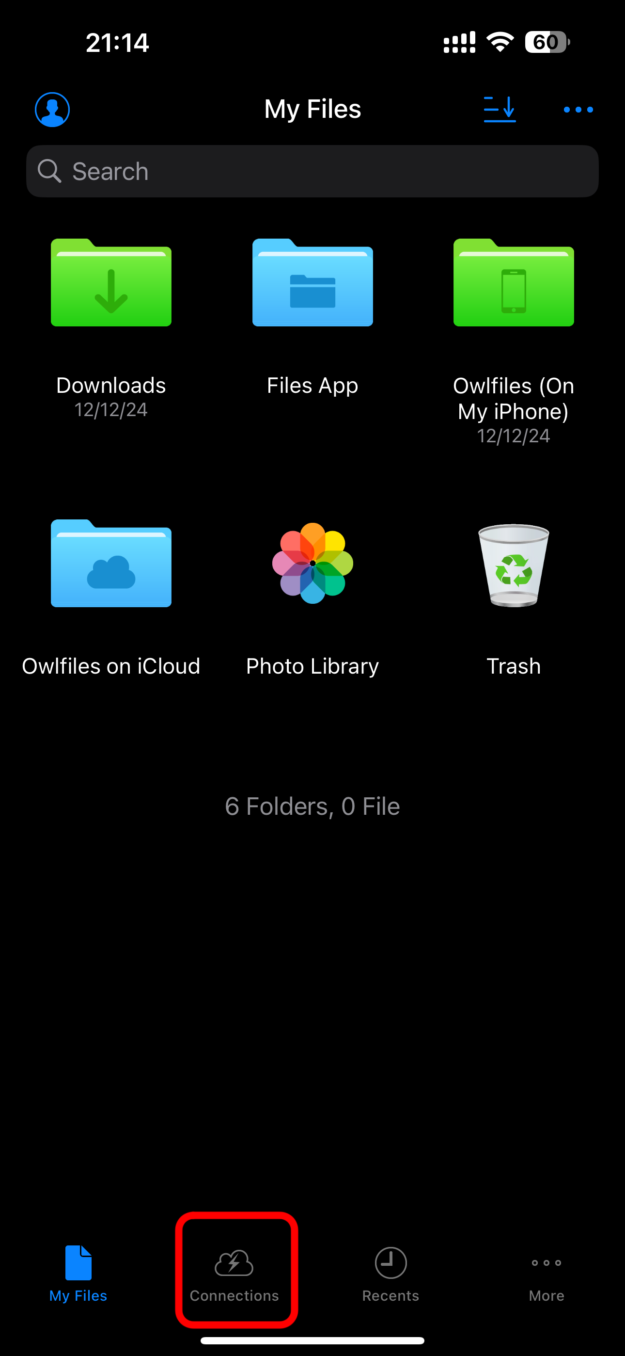 5. Mở ứng dụng OwlFile, chọn Connection