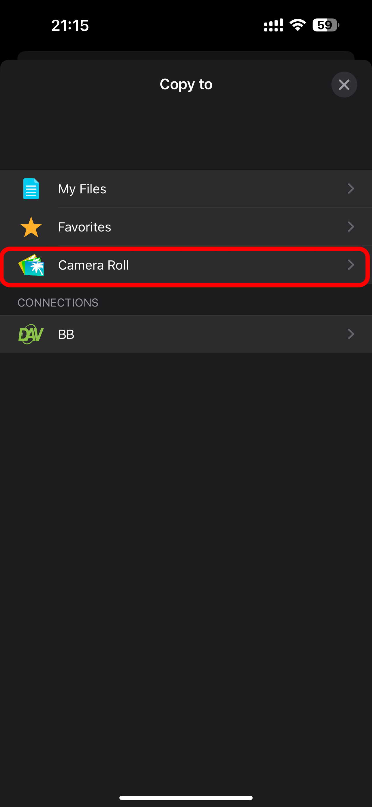 13. Chọn nơi lưu là Camera Roll